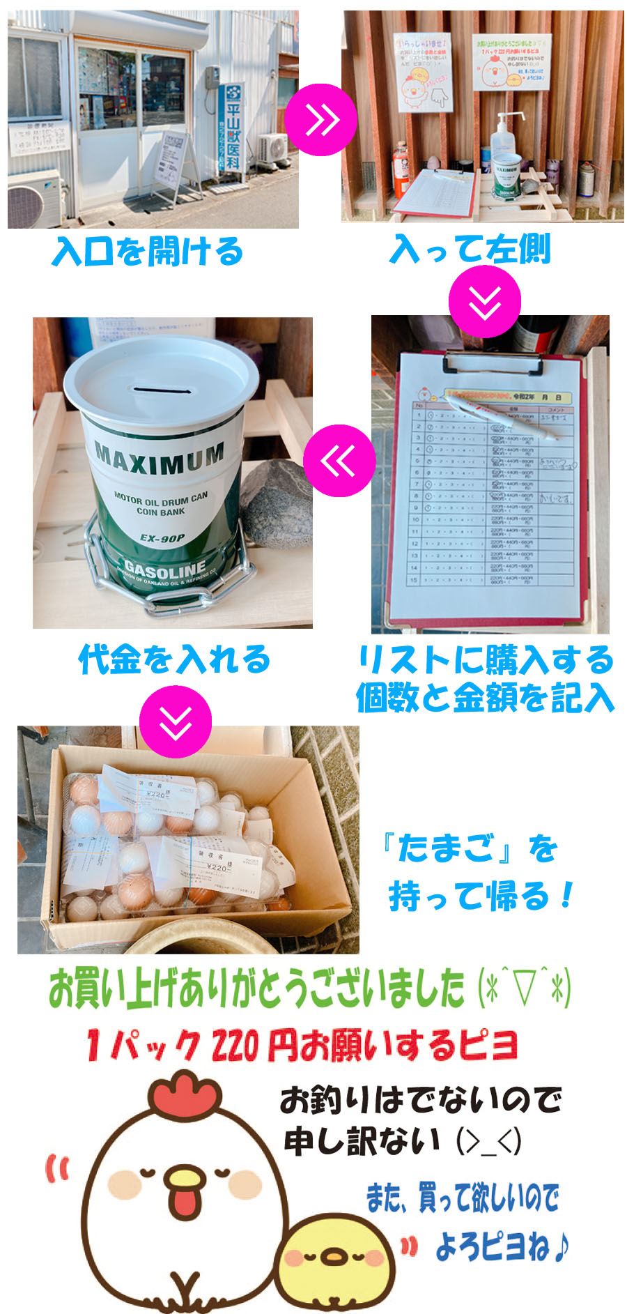 平山獣医科医院で絶賛販売中の『新鮮たまご』