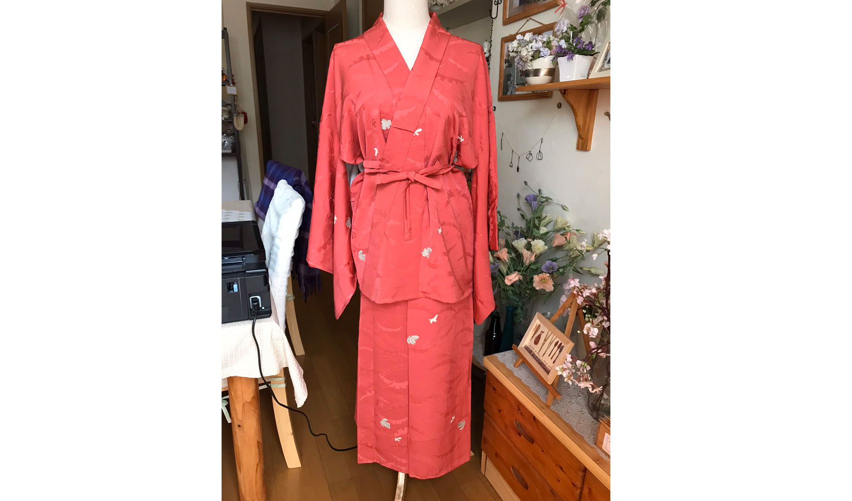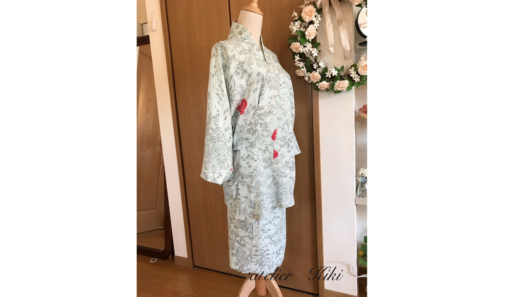 着物から写真のような洋服に生まれ変わらせることができますよ。しかも、完全オーダーなのでご自身の体系にフィットするサイズでお作りします。